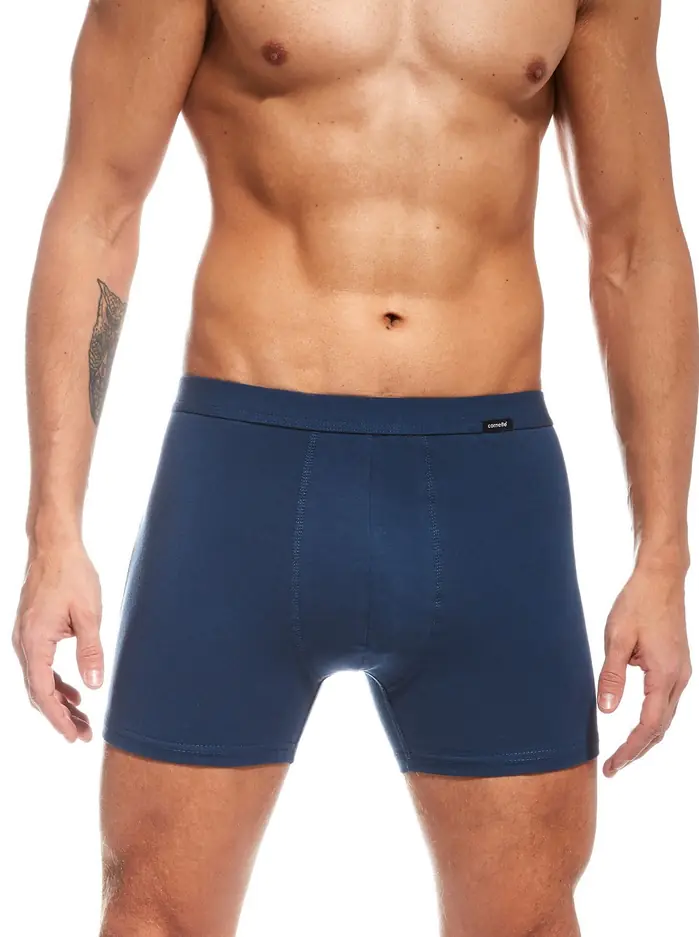 Bokserki męskie wykonane z bawełny z dodatkiem elastanu. Idealnie dopasowują się do ciała. Klasyczny krój oraz zastosowanie płaskich szwów zapewnia wygodę. Bezuciskowe nogawki. Wygodna gumka obszyta bawełną.