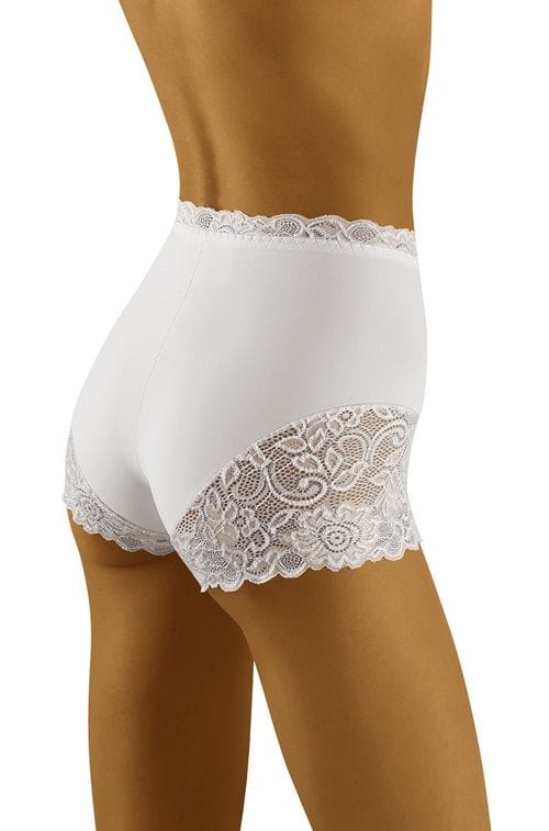 A mix of femininity and comfort. Higher cut, lace legs, lace trimming at the waist... These shorts were created for women who appreciate underwear with a higher, more built-up cut. Comfortable and comfortable, they subtly shape the body. Front and back - smooth. Composition: 87% polyamide, 13% elastane.