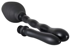 Black intimate shower (length 13 cm, volumetric capacity 300 ml) with two replaceable spray tips. Easy to clean. Long wavy end total length approx. 23 cm, O 1.7-3 cm. Short, smooth overall length approx. 11.5 cm, about 1.9-2.3 cm. Material: PVC, phthalate free, according to EU standards.