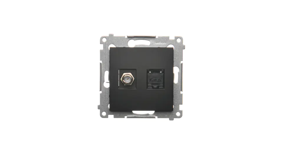 Simon 54 Antenna socket type F + RJ45 cat.6 module) black matt DASFRJ45.01/4