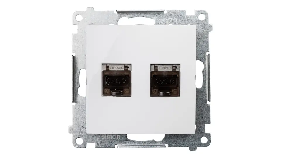Simon 54 Computer socket double 2xRJ45 cat.6 shielded with shutter white D62E.01/11