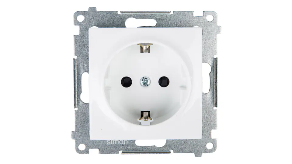 Simon 54 Single socket SCHUKO z/u 16A IP20 with shutter white DGSz1Z.01/11