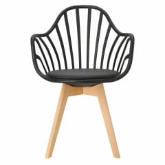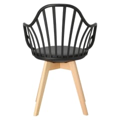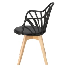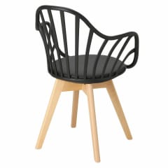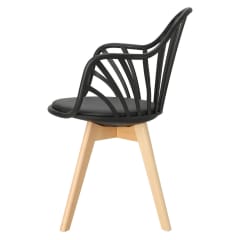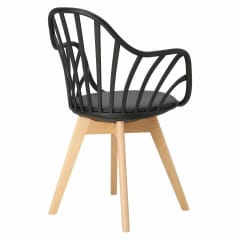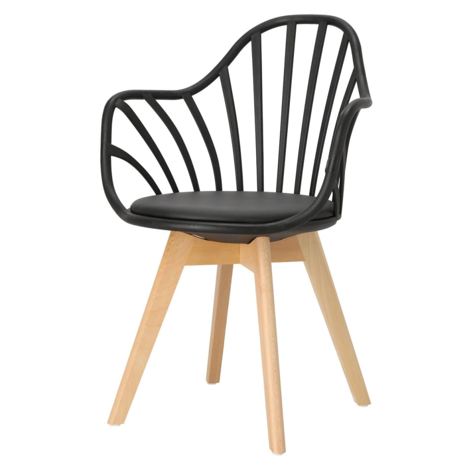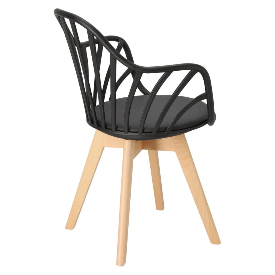 The Sirena chair will perfectly find itself in a modern arrangement, both dining and office, becoming its showcase. It is equipped with a soft pillow, covered with eco leather in black, which will provide maximum comfort to every user. Practical openings in the backrest give the whole an original look, while guaranteeing an adequate level of ventilation. The chair has armrests that guarantee comfortable support for your hands. The base of the chair are legs made of beech wood, durable and durable, which guarantees use for many years. The seat located on it is made of polypropylene. Polypropylene is characterized by excellent strength and resistance to water, temperature and mechanical damage. The material is very easy to clean, so you can easily remove any dirt from it. Carton dimensions: 64x58x75 cm Max. number of pcs. per carton: 4