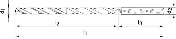 Application: twist drill for alignment with tight diameter tolerances and good surface quality. Designed for drilling max. 7 x D holes with high cutting speeds. Designed in particular for long- and short-chip materials such as structural steels and carburizing, cast steels, heat conditioning steels, carbon steels, bronzes, castings, high-alloy AlSi alloys and alloy steels with a strength of up to 1200 N/mm2.