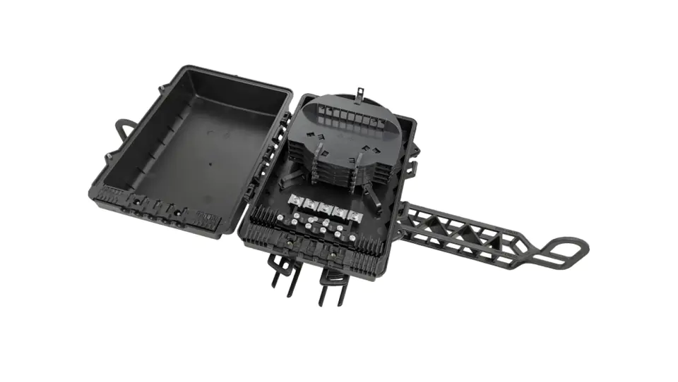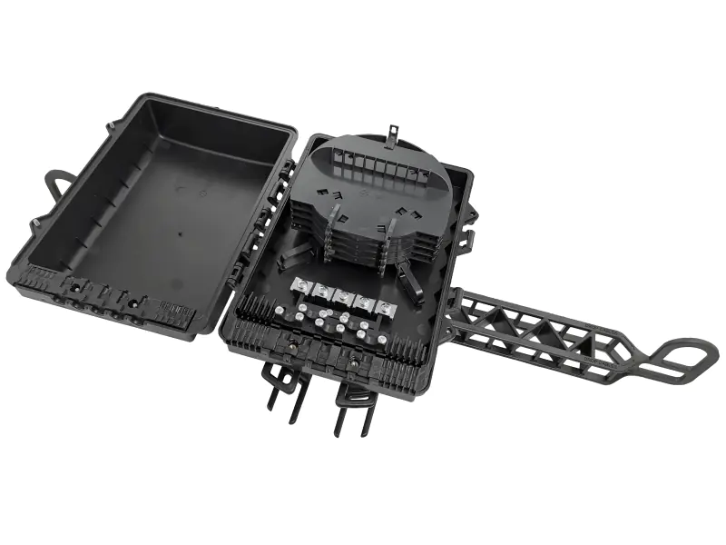 - Integrated trays for 96 fiber optic splices;