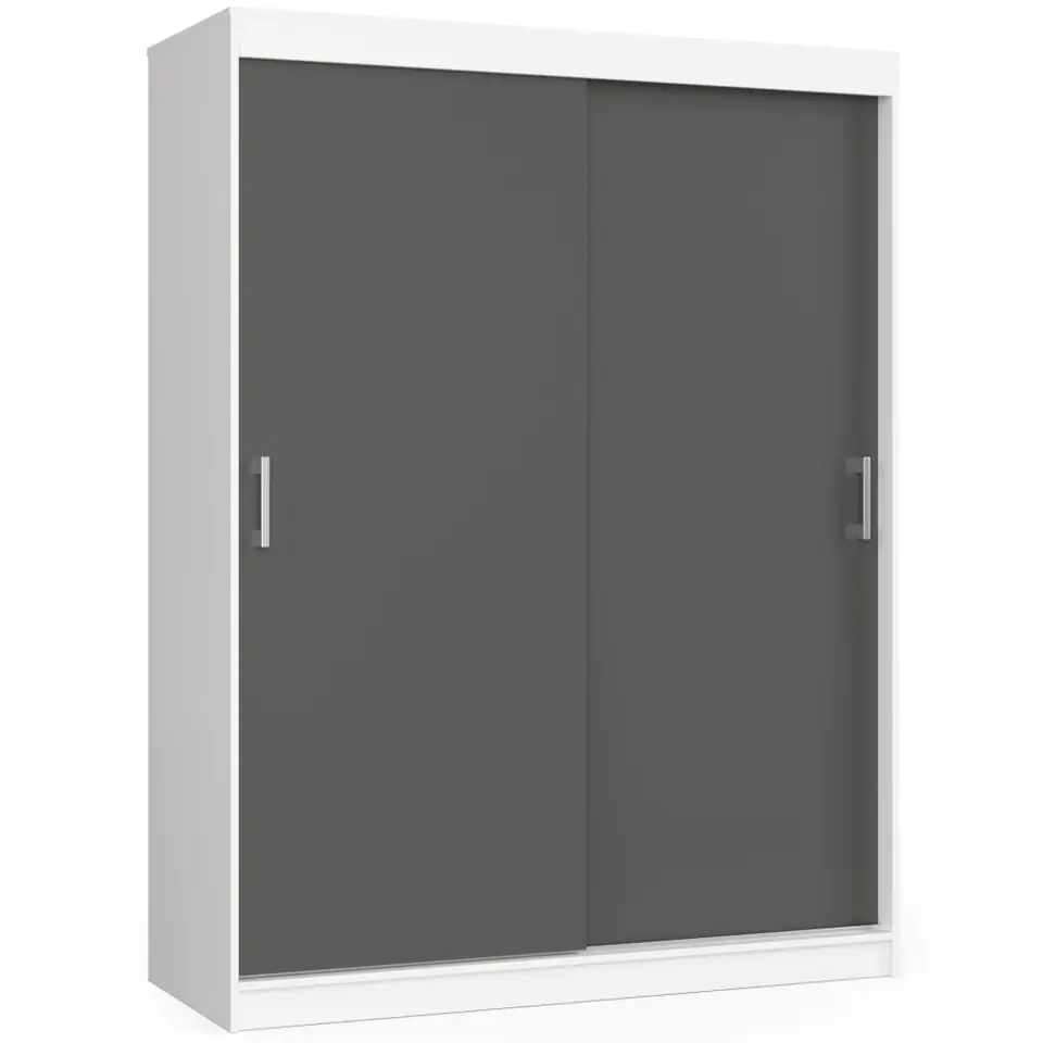 A two-door sliding wardrobe is a piece of furniture that will be used primarily in the hall and bedroom. It is worth noting, however, that it will work successfully, for example, in the office, housing outerwear, and by the way many other articles necessary in a room intended for employees. The presented piece of furniture is characterized by a simple, universal design, combining a white body with sliding doors graphite gray. The 150 cm CLP MONO sliding wardrobe consists of two parts. In the first of them there are five capacious shelves, while in the second one shelf and a place with a bar for hanging clothes.