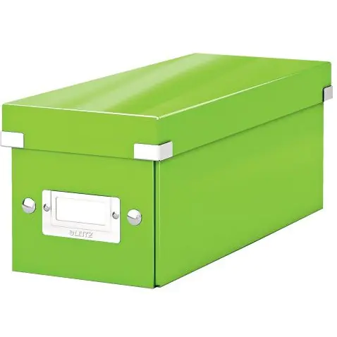 CD box. Foldable to save space when not in use. With a label frame to describe the content. Made of high quality durable cardboard. The laminated surface provides long-lasting protection. Modern design looks great both in the office and at home.