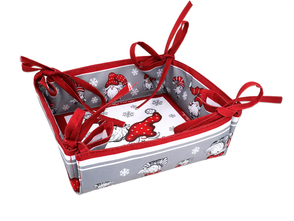 The CARMANI material bread basket is the perfect accessory on your table. Tied on the corners, it takes up little space.