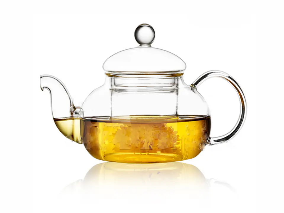 A small, glass teapot with an infuser in which we can brew our favorite tea. A well-adjusted handle allows you to hold the kettle comfortably.