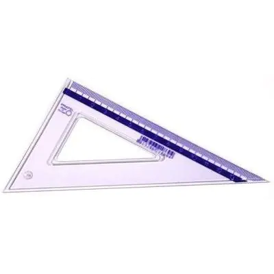 Standard transparent ekierka. It is characterized by indelible graduations and precise scale printing (up to 1/1000 cm). The product has rounded corners for the safety of the user. Made of plastic with an appropriate hardness to flexibility ratio ensuring high fracture resistance. Manufactured in accordance with European