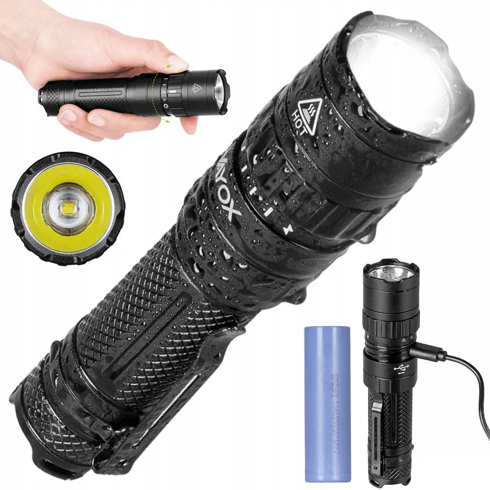 Professional tactical flashlight model VA0077 is a development of a series of lamps with high durability. It is equipped with a 20W SST40 diode, the flashlight generates the strongest luminous flux of 1500lm. The flashlight is made of shock- and fall-resistant aluminum, which is why it is ideal for uniformed services, athletes, explorers, tourists, hunters, prospectors and for everyday use, e.g. in the household. The flashlight has a built-in 21700 battery with a capacity of 4000mAh, charged via USB-C.