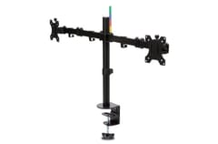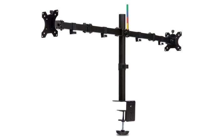 - SmartFit® lets you adjust your monitor to the right comfortable height in no time*Simply match your hand size to the colour in the diagram included with the product, set the height to the colour of your choice - and you're good to go!*Wide adjustment range: ±90° swivel, 180° orientation (landscape or horizontal) and ± 45° adjustment*Extendable arms allow easy adjustment of monitor distance settings (up to 399 mm / 15.7 inch)*Has 2 mounting options - using a C-clamp or eyelet buckle made of durable steel and aluminum*Easy to mount to desk edges with Type-C clamp or eyelet buckle - takes up little space, scratches or damages the desk surface*Removable VESA 75/100 mounting plate allows monitors up to 33" screens up to 33" and weighing up to 8 kg /17.6 lbs (per shoulder)*Cable management system reduces desk clutter