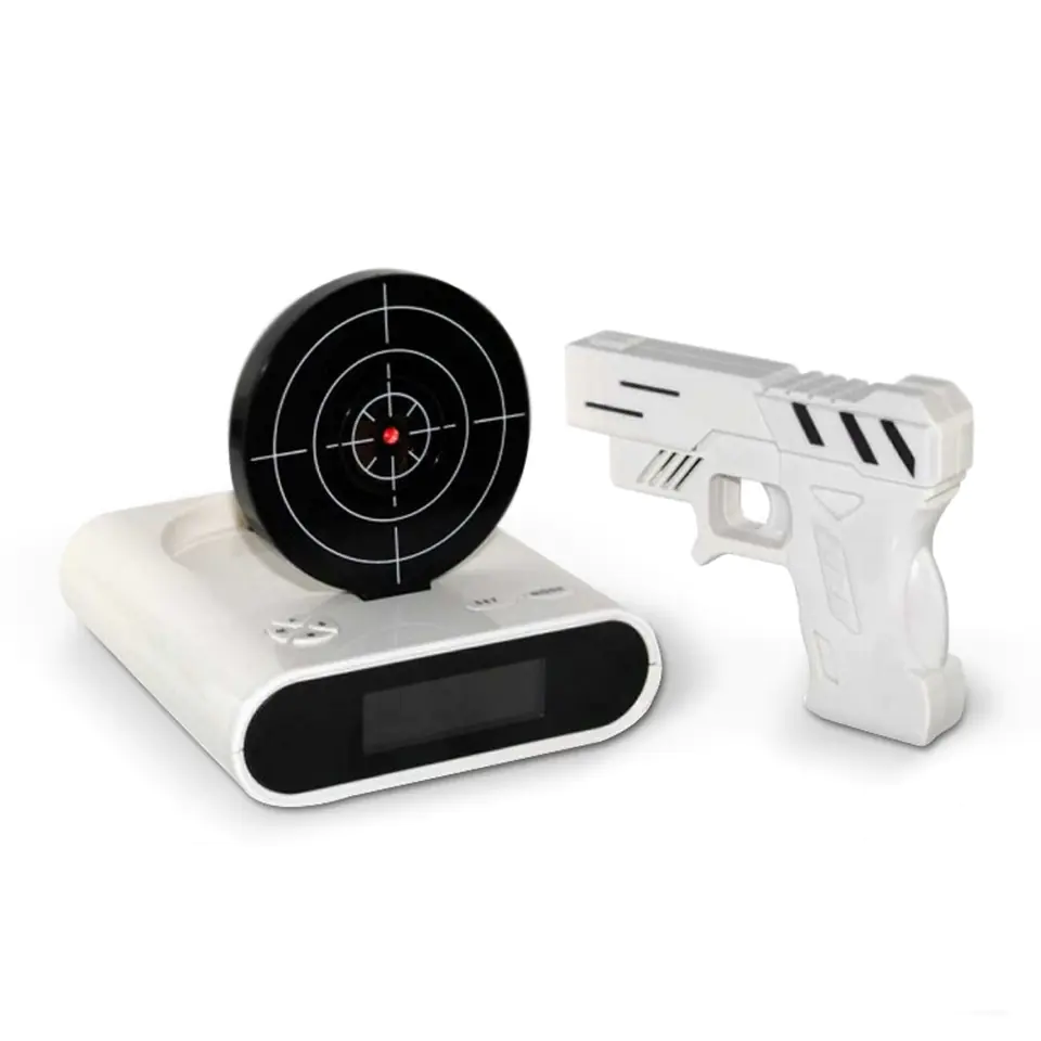 Just hit the target If getting out of bed is not your strong point and you have often wanted to destroy the alarm clock interrupting sleep, now you will be able to shoot it. The sniper's alarm clock can be switched off using the remote control – this is an extremely practical solution. But this is not all its advantages. The remote control looks like a real gun! To shoot your alarm clock every morning – it must be an interesting experience... And most importantly – it works! The alarm clock will immediately go silent if you hit the target accurately! But that's not all – shooting the alarm clock will be very pleasant and you will never get bored, because you can record the alarm sounds yourself. Just choose a melody or sound that is extremely annoying to you, and waking up will certainly be effective!