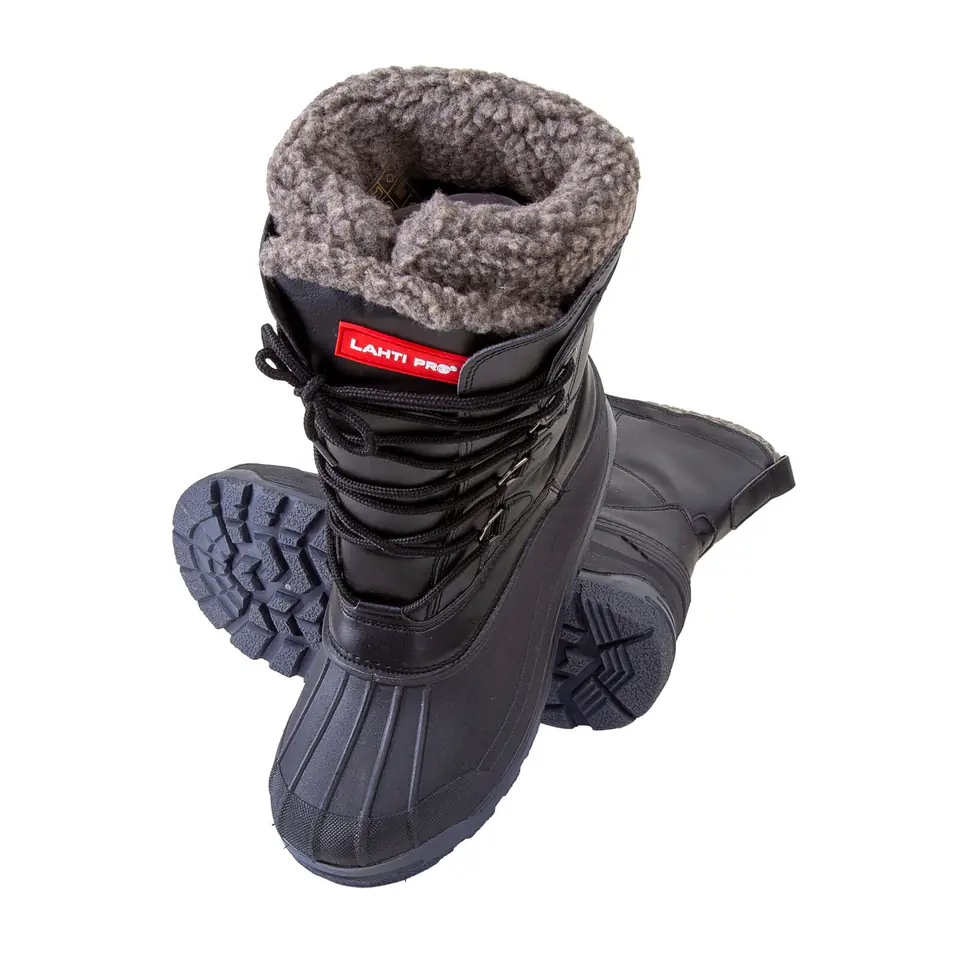 SNOW BOOTS, HIGH, SYNTHETIC LEATHER, BLACK-GREY, "43", LAHTI