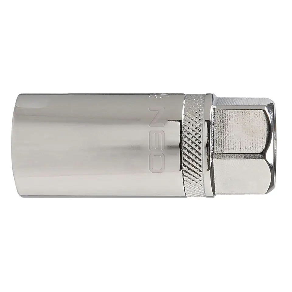 1/2" NEO candle cap (ref. no. 08-090) with a size of 16 mm, made of durable chrome-vanadium steel. Magnetic insert prevents the candle from falling out during assembly. The quality of the tool is confirmed by the TÜV certificate and a 25-year manufacturer's warranty. The NEO brand meets the expectations of professionals.