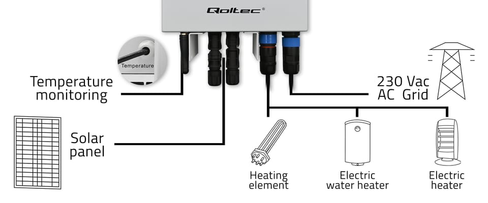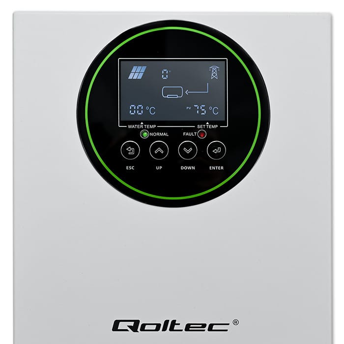 Continuous operation and comfort, regardless of weather conditionsInvest in the future with the Qoltec 3000W solar inverter and enjoy energy independence. Thanks to the bypass function, it can be connected to both solar panels and the power grid, ensuring uninterrupted operation of the heating equipment. Thanks to this users can rest assured that their heating system will operate reliably under all conditions, with no interruptions in heat supply. Your home deserves the best!Comfort and economy - modern heating for your home!- Thanks to advanced MPPT technology, the inverter ensures maximum use of solar energy, resulting in lower electricity bills,- It can be connected to both solar panels and the power grid, e.g. in the event of an energy shortage,- Ideal for various heating applications, from heating water in boilers to supplying underfloor heating systems,- Robust design and high quality workmanship guarantee long and trouble-free operation.Get the most out of MPPT technologyOur inverter uses MPPT technology to maximise energy efficiency, enabling optimum use of solar energy. In this way, the system continuously monitors and adjusts the voltage and current of the photovoltaic panels, to ensure maximum power point. This is advanced energy management allows the highest possible efficiency to be achieved from solar panels, even under varying weather conditions such as partial shade or changes in the intensity of sunlight. Solar energy in your heating systemThanks to its advanced MPPT technology and BYPASS function, the inverter is ideal for:- Power supplies for electric boilers, enabling the heating of domestic water and electric heaters, providing warmth throughout the house,- It will also work in heating mat systems, which are used in bathrooms, kitchens or other rooms requiring additional heating,- Can be used for the supply of heating systems for swimming pools, allowing to maintain a comfortable water temperature in an ecological and economical manner,- Solar energy can be used efficiently to maintain an optimum floor temperature, which increases occupant comfort and reduces heating costs.Full Control Over Energy EfficiencyWith the Smart SWHS mobile app, users can remotely monitor and manage the devices operation, track water temperature in real time, adjust settings, and check system performance. This enables optimization of its operation based on current needs and easy adjustment of parameters such as water temperature regulation (from 30°C to 80°C).Easy monitoring and configurationThe solar inverter is equipped with an advanced LCD display that provides users with full control and transparency of system operation. Intuitive display menu makes it easy to configure and customise inverter settings to suit individual user needs. The display shows the current operating parameters, allowing the performance of the system to be monitored on an ongoing basis. Users can quickly check the current operating status of the inverter, including the operating mode (MPPT, BYPASS) and information on any errors or alarms.Your safety is our priority - advanced security technologiesThe product is equipped with a number of safety features to ensure safe and reliable use:Overvoltage protection: Prevents damage caused by excessive voltage from photovoltaic panels or the power gridShort-circuit protection: Automatically disconnects the system if a short circuit is detected, protecting the equipment and the installationProtection against overheating: A built-in temperature monitoring system automatically switches off the inverter if the internal temperature exceeds a safe levelOverload protection: Prevents damage caused by overloading, ensuring long-term, trouble-free operation of the equipmentProtection against power failure: The BYPASS function automatically switches power to the grid in the event of a power failure from the PV panels, ensuring uninterrupted system operation.