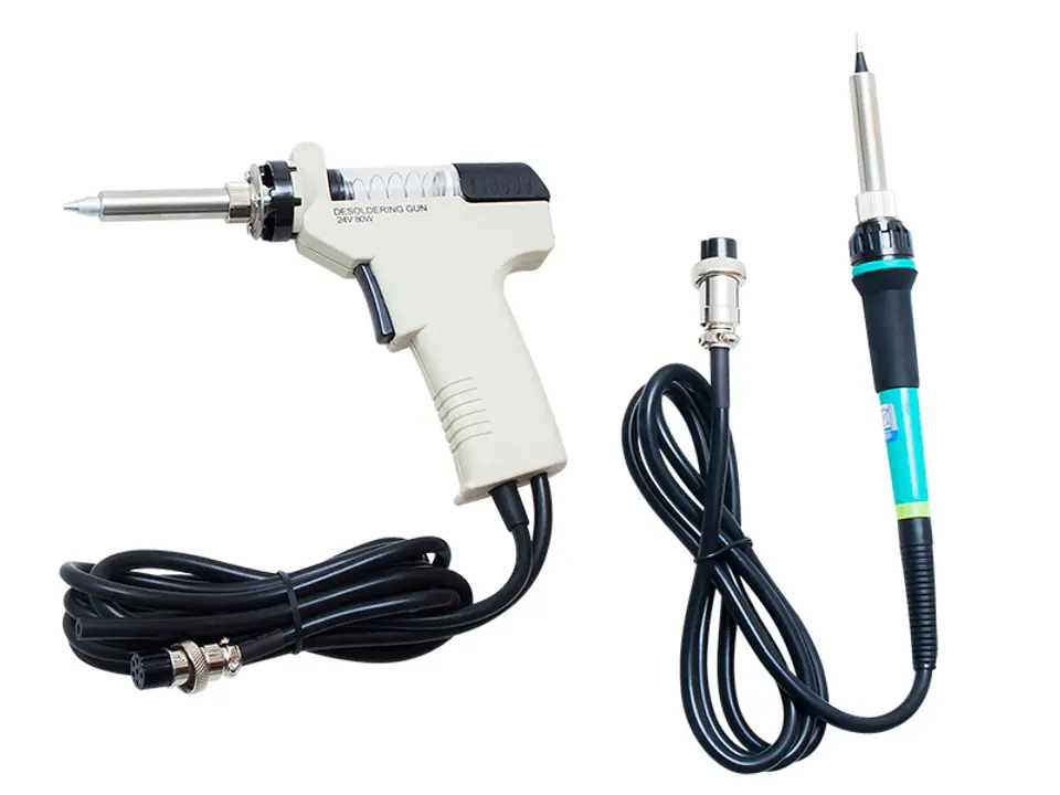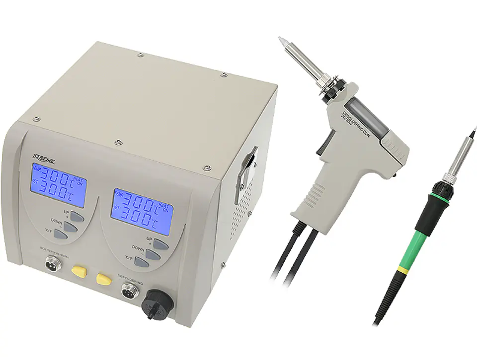 - Pistol handle with desoldering function allows easy and quick removal of tin residues from single-sided and double-sided printed circuit boards