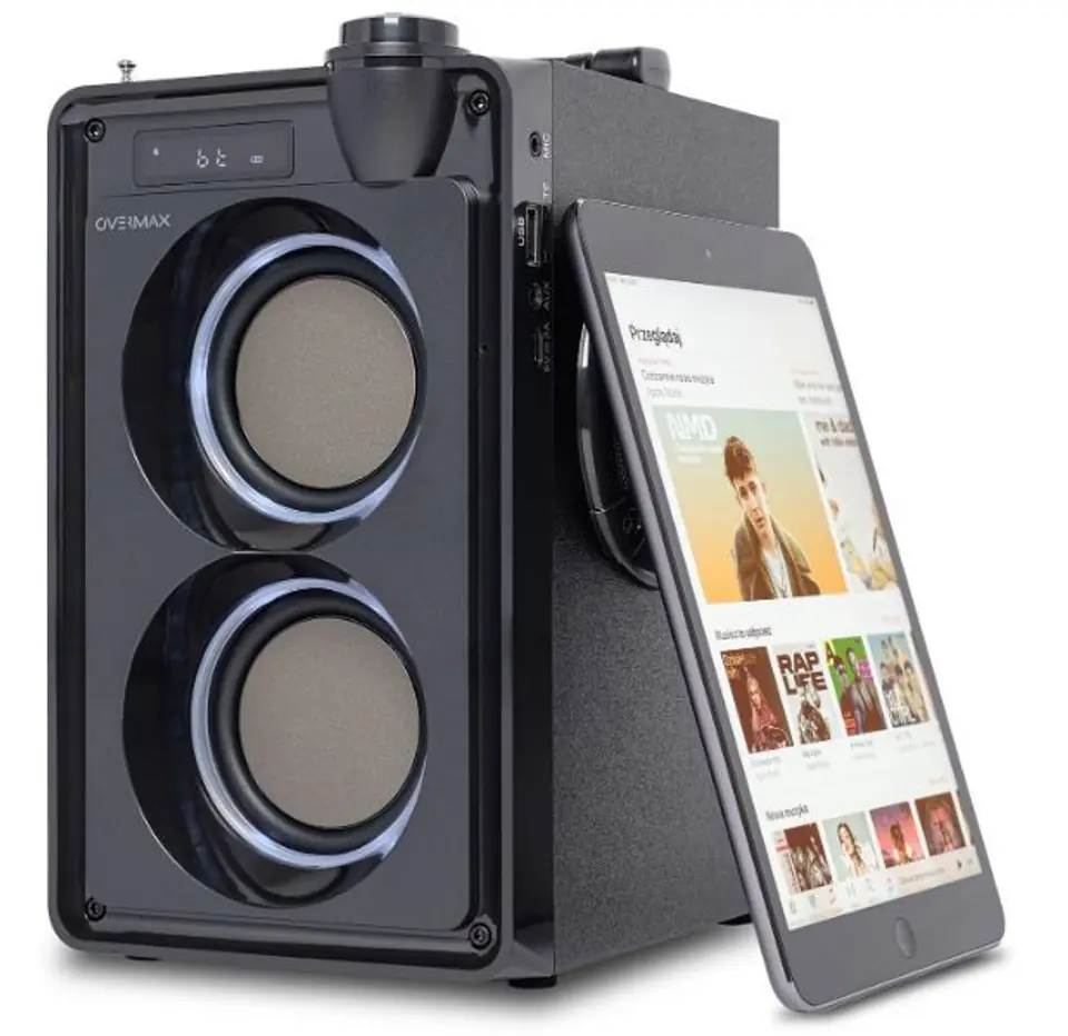 The Overmax Soundbeat 5.0 wireless speaker is equipped with two high-quality speakers with a total power of 20 W RMS. The speakers are backed by passive heatsinks that add depth to the bass tones for a powerful bass beat. The 3600 mAh rechargeable battery allows up to 8 hours of continuous playback. Thanks to this, Soundbeat 5.0 is perfect not only at home, but also when traveling, on the grill or in the garden.