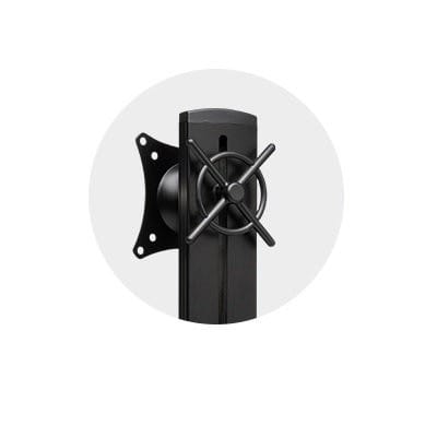 The dial allows you to quickly and easily adjust height (9.4"-18.5"), tilt and swivel (+/- 10°), swivel to landscape or portrait orientation (+/- 180°), and lock the monitor in place. The VESA quick release connector simplifies monitor installation.