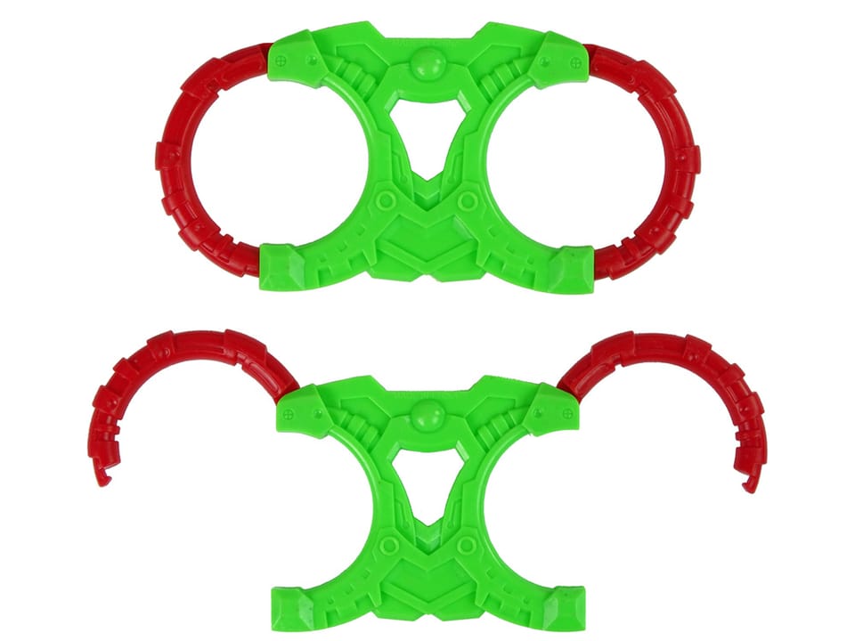 Introducing an amazing set of space weapons that is the perfect prop to fight a dangerous enemy from a distant planet. This unprecedented, original weapon has cosmic sounds and lights , which will certainly encourage all kids to play. A space weapon consists of many elements. The colors of the set consists of colors: silver, black, red, green and blue. Pistol When you press the trigger, it lights up and makes sounds, so it's worth trying the toy in a dark room. An additional element which are handcuffs will help you in capturing the enemy. The disc thrower can be put on your hand and placed in the included discs and fired them at the enemy.