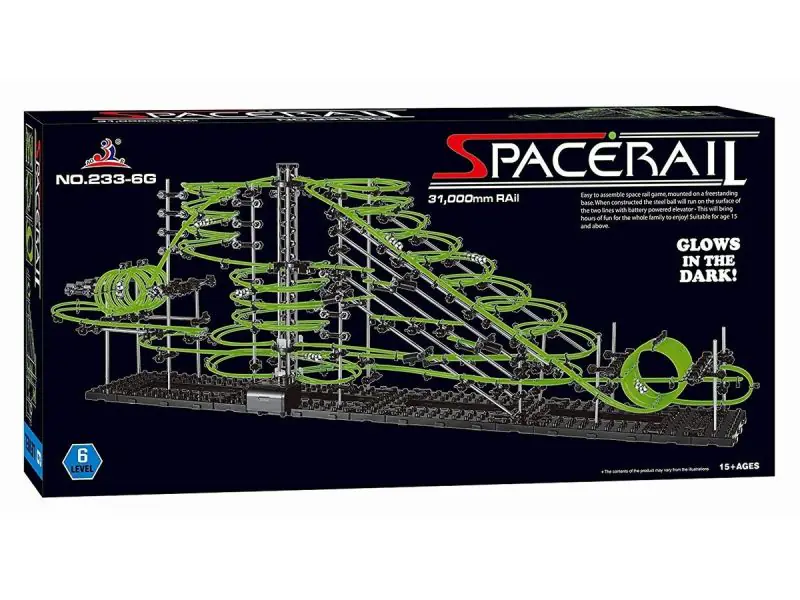 The whole structure is made of metal, plastic and fishing line. The combination of all the elements finally gives a great track, on which metal balls wander. They descend through the loops one after the other until they reach the elevator, which takes them to the very top of the building where the fun begins again. Spacerail is a 3d puzzle that will spark your creativity, because you can build structures at your discretion, not necessarily according to the steps in the manual.