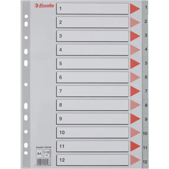 Spacers plastic grey PP A4 1-12 numeric 100106 ESSELTE
