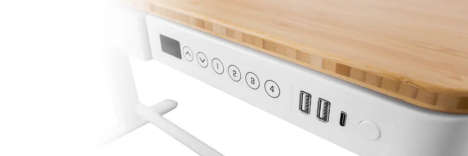 Literally everything in one place. The desk has been equipped with a controller with an LED display, buttons for manual position change, 4 programmable buttons for remembering positions, 2 USB ports, a USB-C port and a parental control function.
