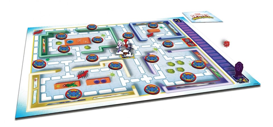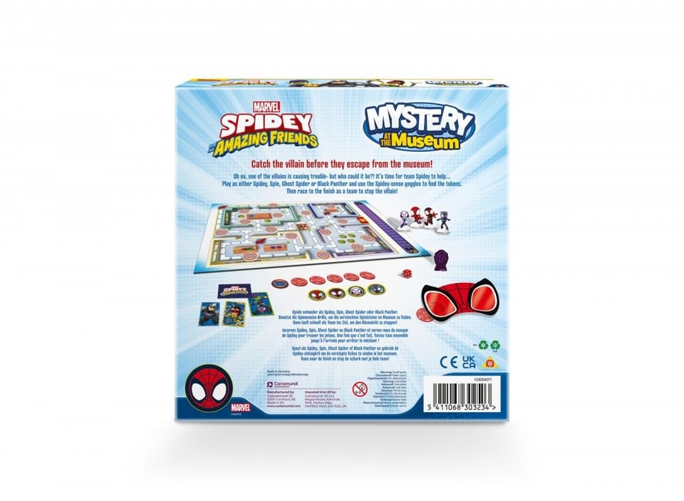 Catch the villain before he escapes the museum! Oh no! One of the villains is causing chaos again, but who could it be?! It's time for Spidey's brave team to step into action... Play as Spidey, Spin, Ghost Spider or Black Panther and use the Spider-Sense Goggles to see what the tokens are hiding. Finish the race as a team and stop the villain!