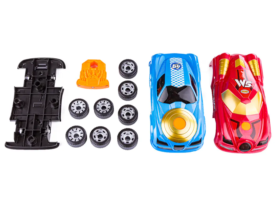 The body of the car can be replaced and realistic sounds and lighting effects will certainly make the game more attractive. Each of the car bodies has a button on the hood. After mounting the body on the chassis and pressing the button, we will hear the sound of the car starting and leaving.