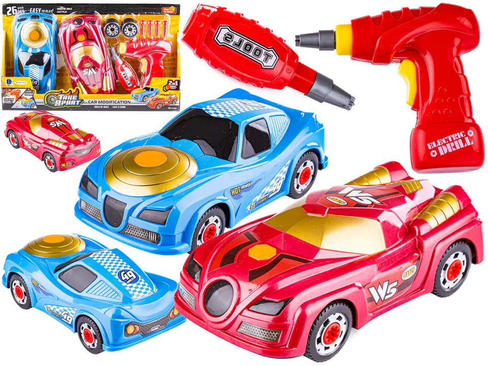 A spinning car is the perfect toy for small DIY enthusiasts. This set develops logical thinking and manual skills. The set includes, m.in, a second body, wheels, bolts.