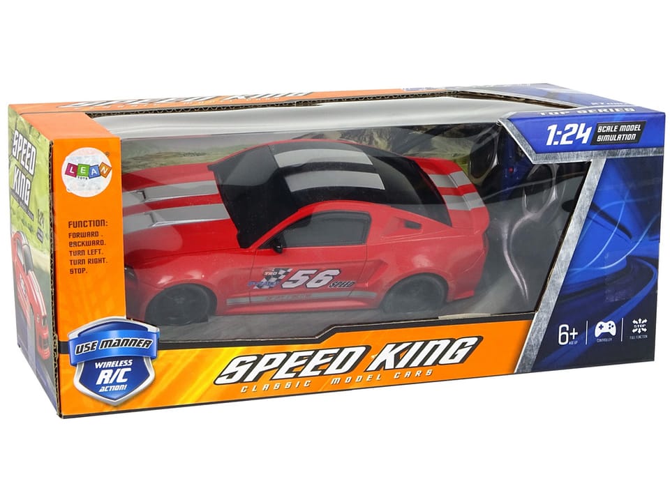 The car has a light and durable construction, sporty design, two gray stripes on the hood and sports stickers, add a claw. Red color catches the eye, you can not fail to notice it. Driving the vehicle is a lot of fun, especially for the youngest, so the remote control included in the set will allow you to steer a small model of a racing car. It has two separate buttons for forward/backward and side-to-side travel.