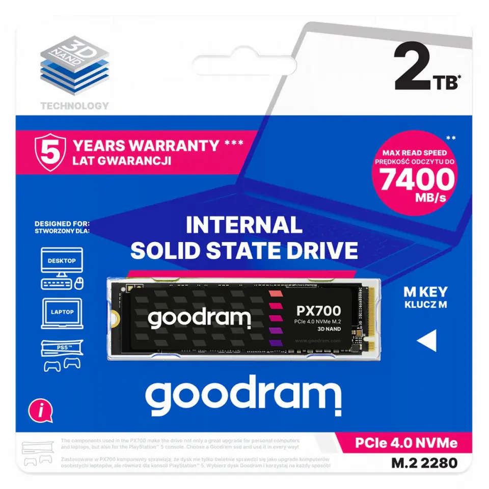 The Goodram PX700 drive is equipped with a high-quality, low-profile heatsink, which means that it not only provides excellent cooling, but also does not take up much space in your computer or console. This is a key element that ensures the durability of the drive and at the same time minimizes the space it takes up in the device.