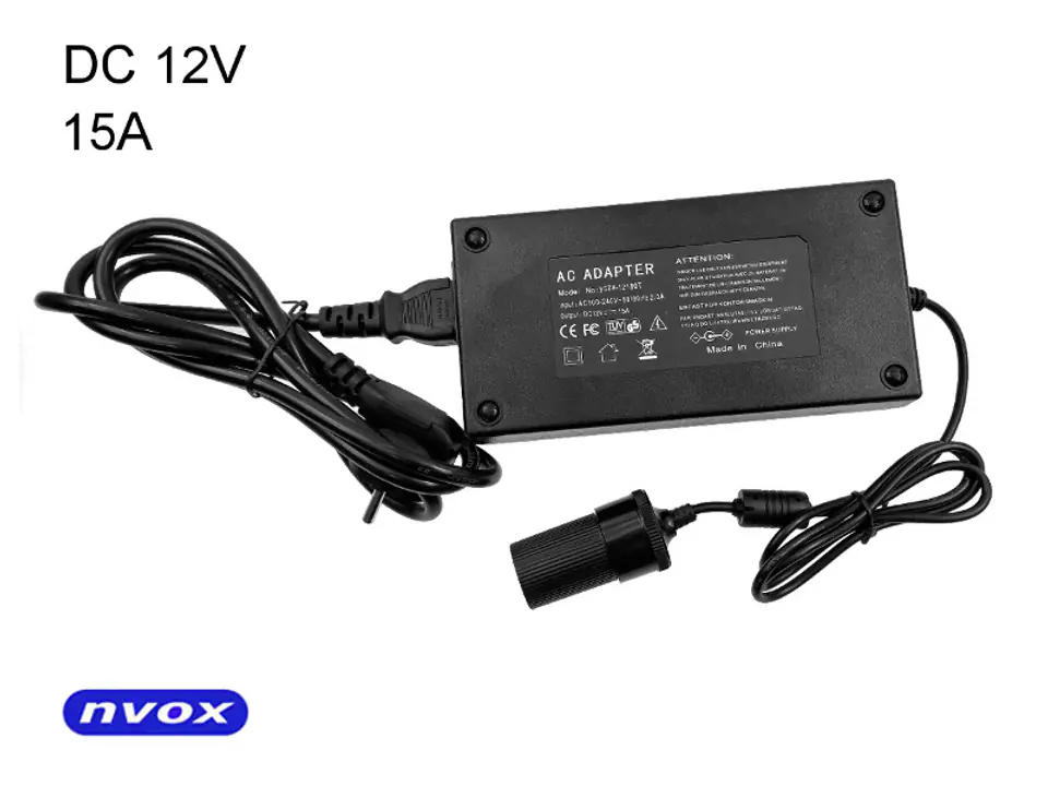 Stabilized power supply with 12V cigarette lighter socket with a power of 180W... NVOX 15A12V