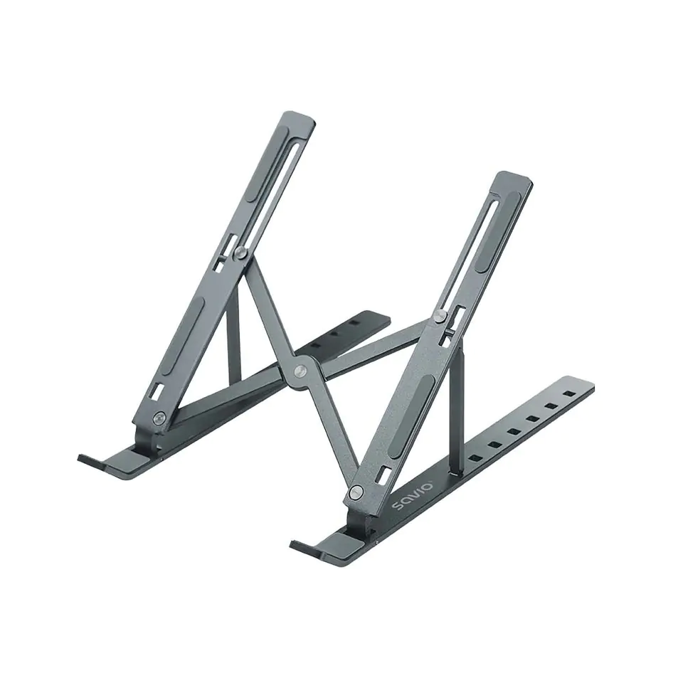 PB-01 portable stand made of high-quality aluminium. It provides stable support for devices such as a laptop, tablets, or smartphones.