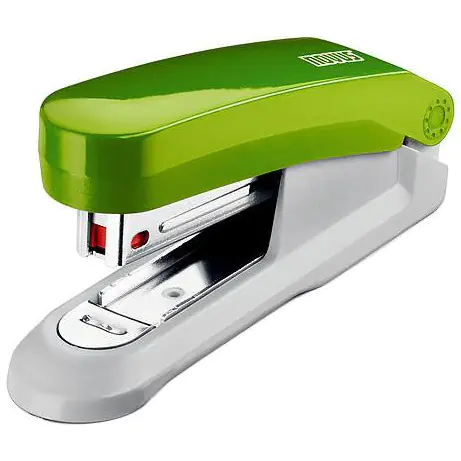 Lightweight, compact stapler Novus E15. The device is made of metal in a plastic housing. It has an integrated metal shearer. It enables permanent and upholstery stitching. Staple loading system from above. The weight of the stapler is only 86 g! The maximum insertion depth is 37 mm. Green color.