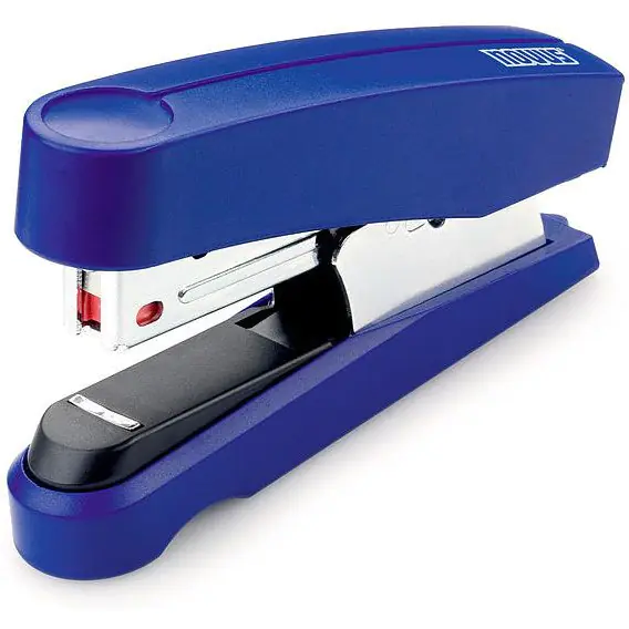 The compact Novus B10FC stapler with Flat-Clinch staple jamming system allows you to place up to 30% more stapled documents in the binder compared to standard stapled documents. Made of metal in a plastic housing. Equipped with an integrated metal shearer. It enables permanent and upholstery stitching. Staple loading system from above. Staple magazine No.10. Maximum insertion depth 38 mm. Blue color. Included 200 staples No.10.