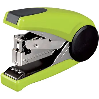 One-Touch stapler in plastic housing, metal mechanical parts. The flat stapling system saves 30% free space when archiving documents. A specially designed lever reduces the pressure force by up to 50%. Suitable for staples 24/6 - 26/6. Staples up to 40 sheets. Additionally equipped with a metal shearer. Insertion depth: 25 mm. Magazine capacity: 100 staples.