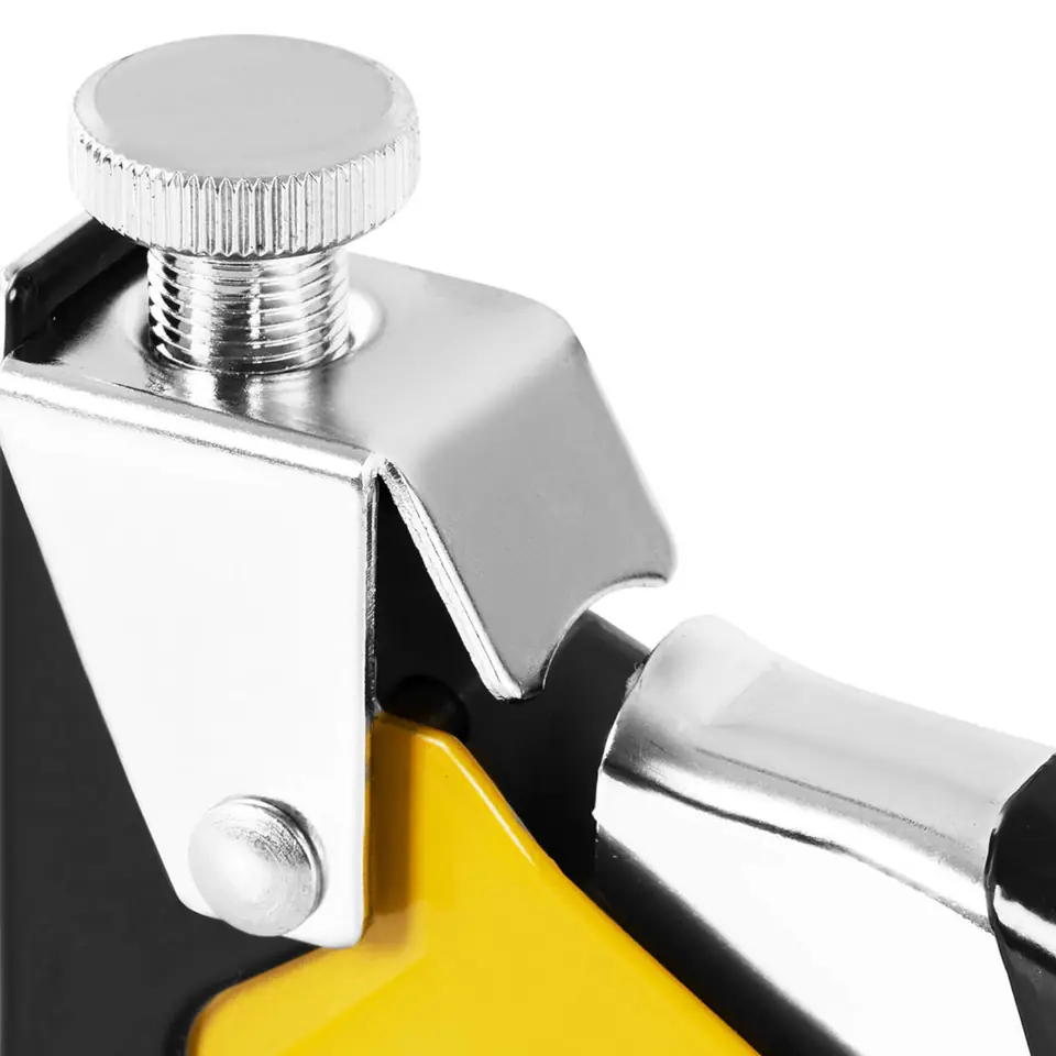 The MSW upholstery stapler allows you to attach leather, felt, roofing felt, carpeting or various insulation materials. Simple and safe one-handed operation. The construction of the stapler is made of painted steel. The device perfectly dampens recoil during stapling. Ergonomic handle fits securely in the hand. For safety, the stapler is equipped with a button that releases the trigger lock. It also has a hammering power regulator that allows you to adjust the force to a given substrate and material. For stitching, flat staples of 4 - 14 mm are used. The set includes a stapler, thanks to which defective staples can be conveniently pulled out.