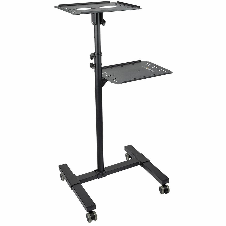 StarTech.com Mobile Projector and Laptop Stand/Cart - Heavy Duty Portable Projector Stand (2 Shelves, hold 22lb/10kg each) - Height Adjustable Rolling Presentation Cart w/Lockable Wheels