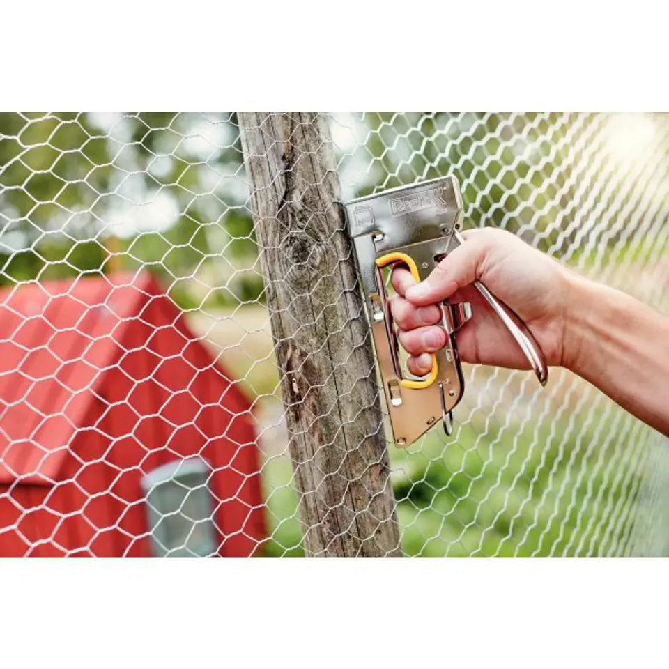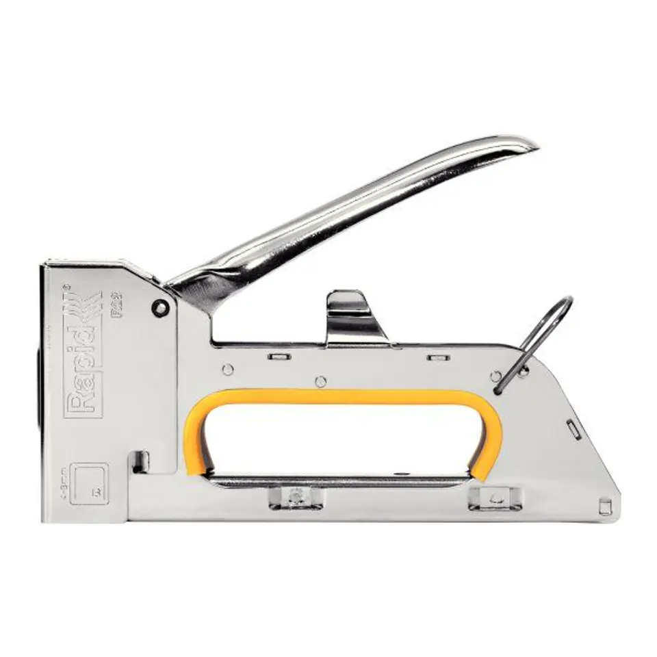 Execution: Made of steel, easy to handle, no recoil, with an additional bottom magazine, for light work. Securing the handle prevents unintentional release. Magazine capacity: 156 staples.
