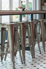 Made of powder-coated metal, the Paris bar stool is an innovative proposition for all design lovers. Steel, hand-made bar stool with an industrial form will add charm to your home relaxation corner. The bar stool has the possibility of stacking, thanks to which it is also perfect for public places such as cafes or restaurants. The stool has light abrasions and visible rust elements, which additionally add character.