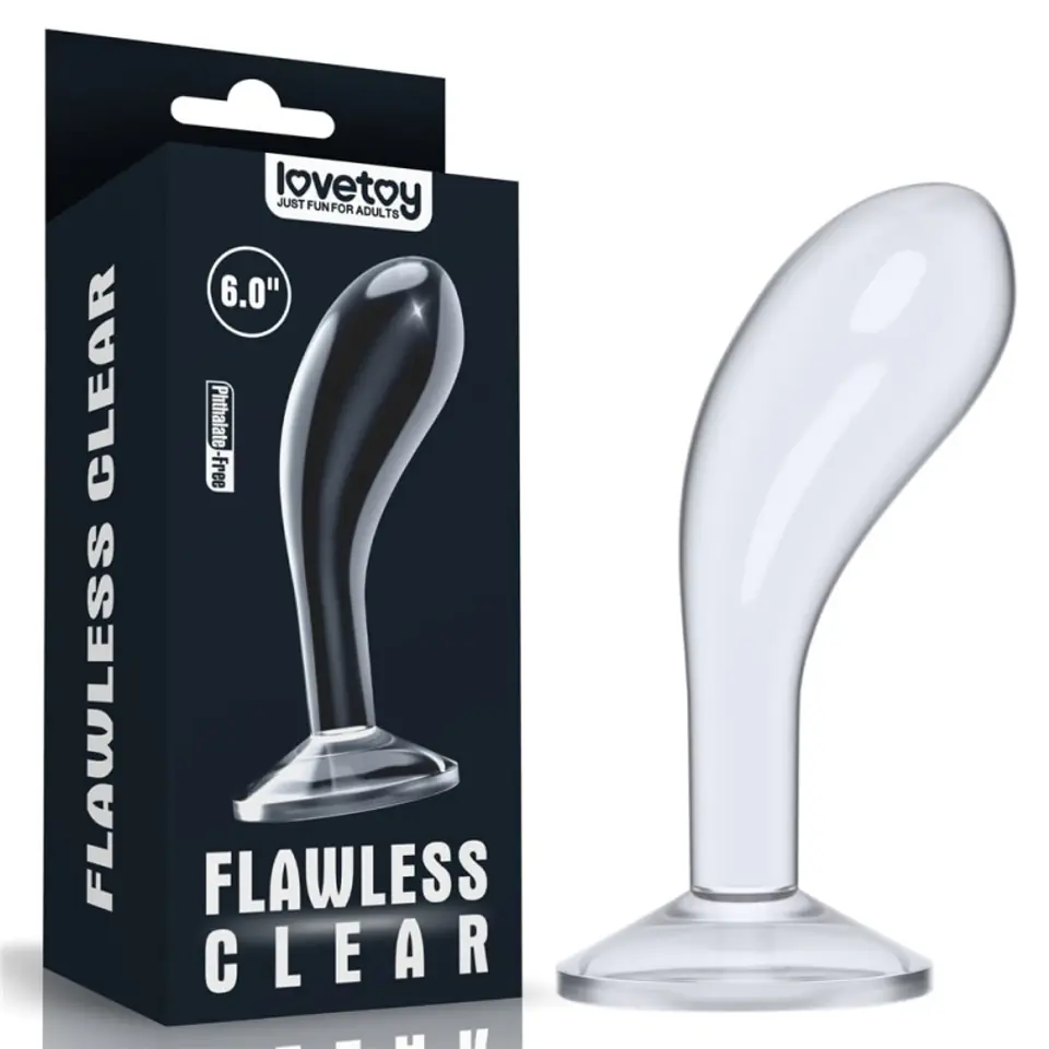Lovetoy plug with suction cup made of TPE. With a curved tip for prostate stimulation. Waterproof.Color: transparentImeter 4.3cmTotal length 15cmUse length 14cmBass diameter 7cm