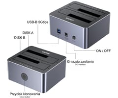 Storage Docking Station - Unitek (Y-3026GY01-EU) 2x SATA III 2.5"/3.5" USB 3.0 5Gbps