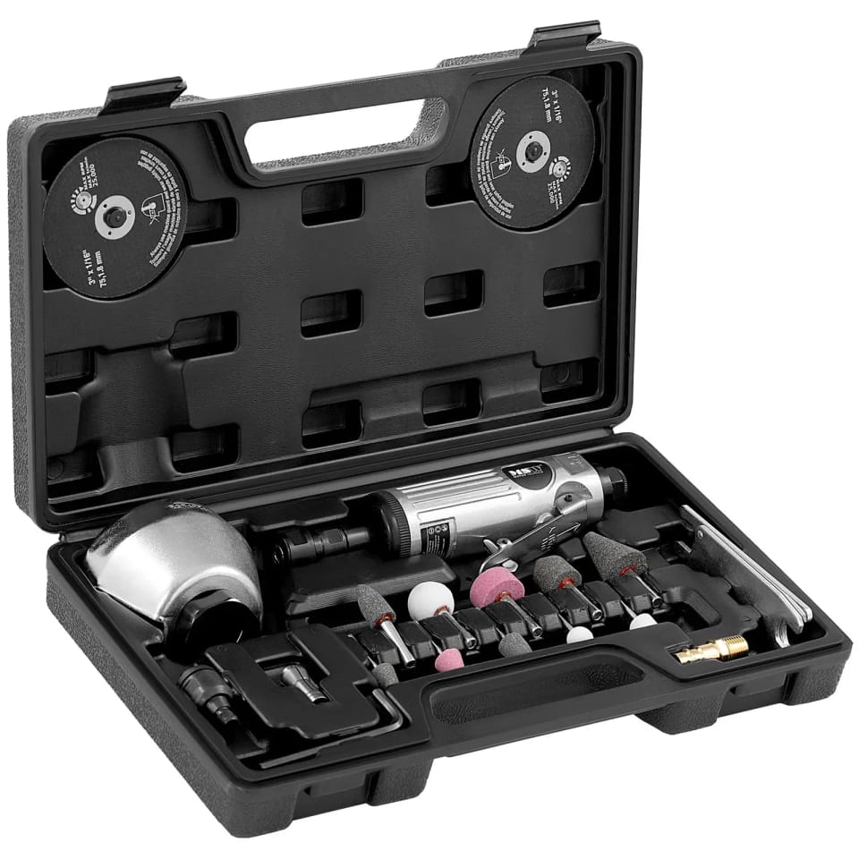- - Versatility - 20 piece set with 2 cutting discs, 10 grinding stones and 2 handles (1/4'', 1/8'') in a suitcase,