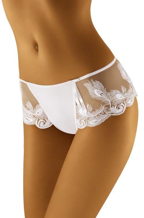 Stringo-shorty Oshi is underwear covered with spectacular embroidery in the form of peacock eyes. In the front part completely smooth, on the sides translucent. The motif interests the look and at the same time allows the underwear to stand out from other proposals. Composition: 83% polyamide, 17% elastane.