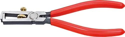 Material: special tool steel, oil hardened and tempered. Easy adjustment to the desired wire or face diameter (max. Ø 5 mm or 10 mm2) with a knurled screw and a self-locking nut. With opening spring. Plastic-coated handles.