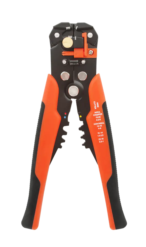 INSULATION STRIPPER Pulls insulation from cables with a diameter of 24-10 AWG It can be used to clamp insulated and non-insulated connectors 22-10 AWG It also has the ability to clamp connectors on ignition wires Functions: 1. Adjustment knob 2. Adjustable length limiter 3. Stripping insulation 4. Crimping 5. Parting