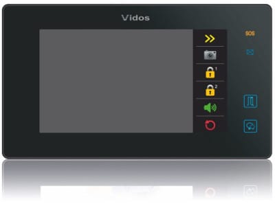 | Selected features: | Wiring - 2 wires without polarity, Plug & Play, Ultra-flat headphone monitor, hands-free, backlit touch control panel, Built-in microphone, Built-in speakers, Two-way communication, Expandable system with any 3 additional internal panels or home stations of the VIDOS DUO series "do not disturb" mode - mute the device for a time specified by the user, Ability to record and take photos of visitors - Record the last 118 photos from the camera Support Micro SD cards up to 16GB for video recording, Support for up to 4 additional CCTV cameras - monitoring from cameras possible via an additional M-K4 module, Support for motion detection function (motion sensor installed at the door station required), Number of ringing tones : 20 Support for up to 4 door stations - M-SM4 module, SOS button for sending an alarm message to a mobile phone, Preview of the image from the door station with the possibility of turning on the sound and opening the gate, Control of electric strike and automatic gate, Addressable internal and external intercom, Intercom and call redirection function, Lighting control via additional module B5, Relay output: 1 pc or 2 pcs. - Module B5 OSD On-Screen Menu |