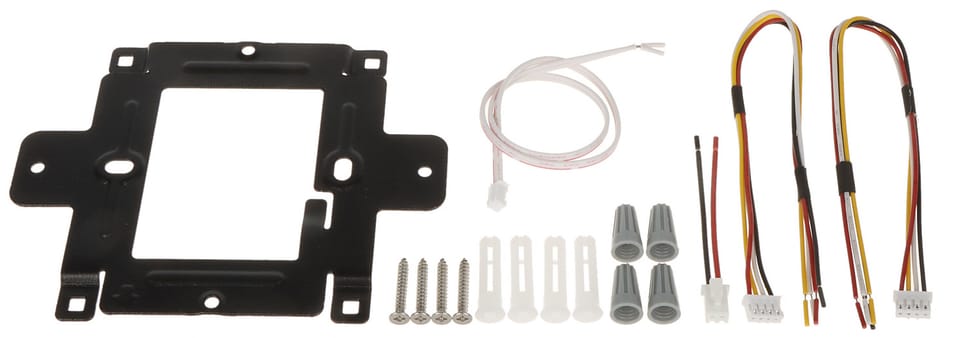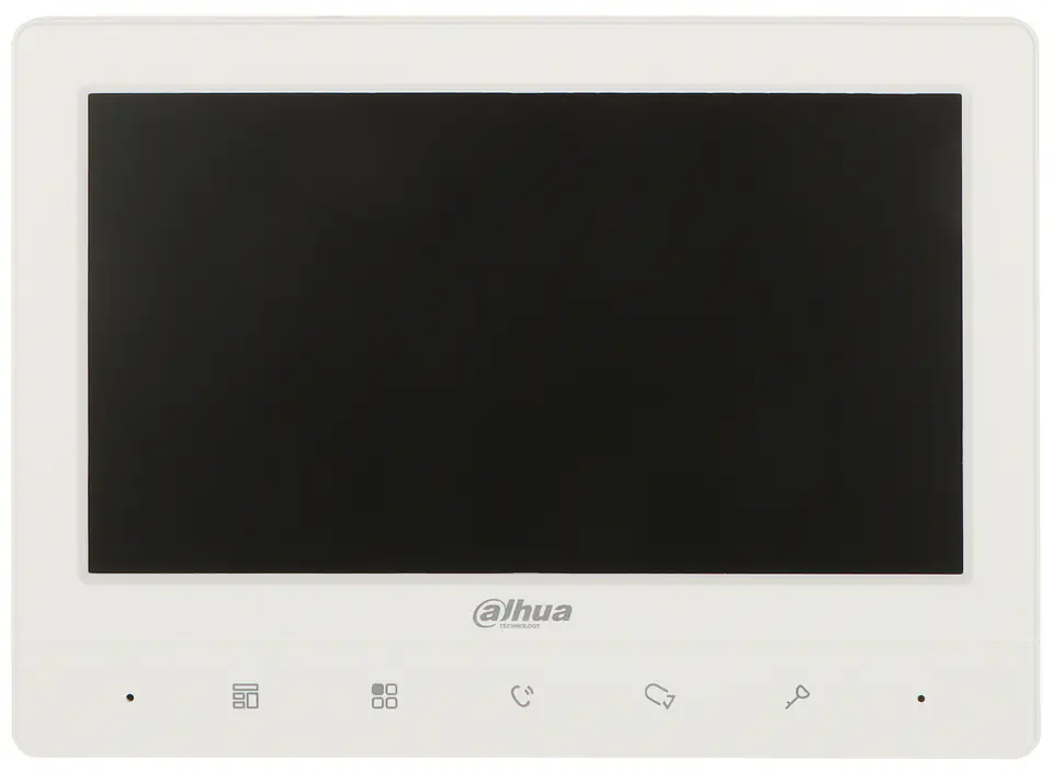 | Selected features: | Touch control buttons, LED indicator indicating operating status - LED green - power signal, Maximum number of door stations in the system: 2, Maximum number of internal panels in the system: 3, Selection of ringtone melody, Smooth adjustment of monitor parameters: image brightness, ringer and call volume, Preview of the image from the door station with the possibility of turning on the sound and opening the gate, Support for capturing photos during video calls, Installation on four-core cable, Communication : compatibility with analog video door entry system DAHUA Surface mounting, Included : Bracket |
