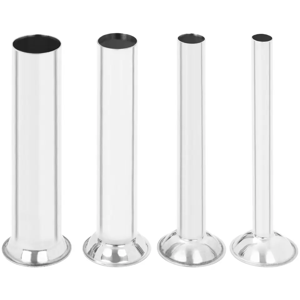 The device has a capacity of 10 l , which is large enough to fill a large number of casings at once. The set includes 4 funnels with a diameter of 16, 22, 32, 38 mm and a length of 18 cm, which allow the preparation of cold cuts of different thickness. The vertical design means that the razor does not take up much space on the countertop. The use of two gears makes it possible to fill the stuffing at different speeds.